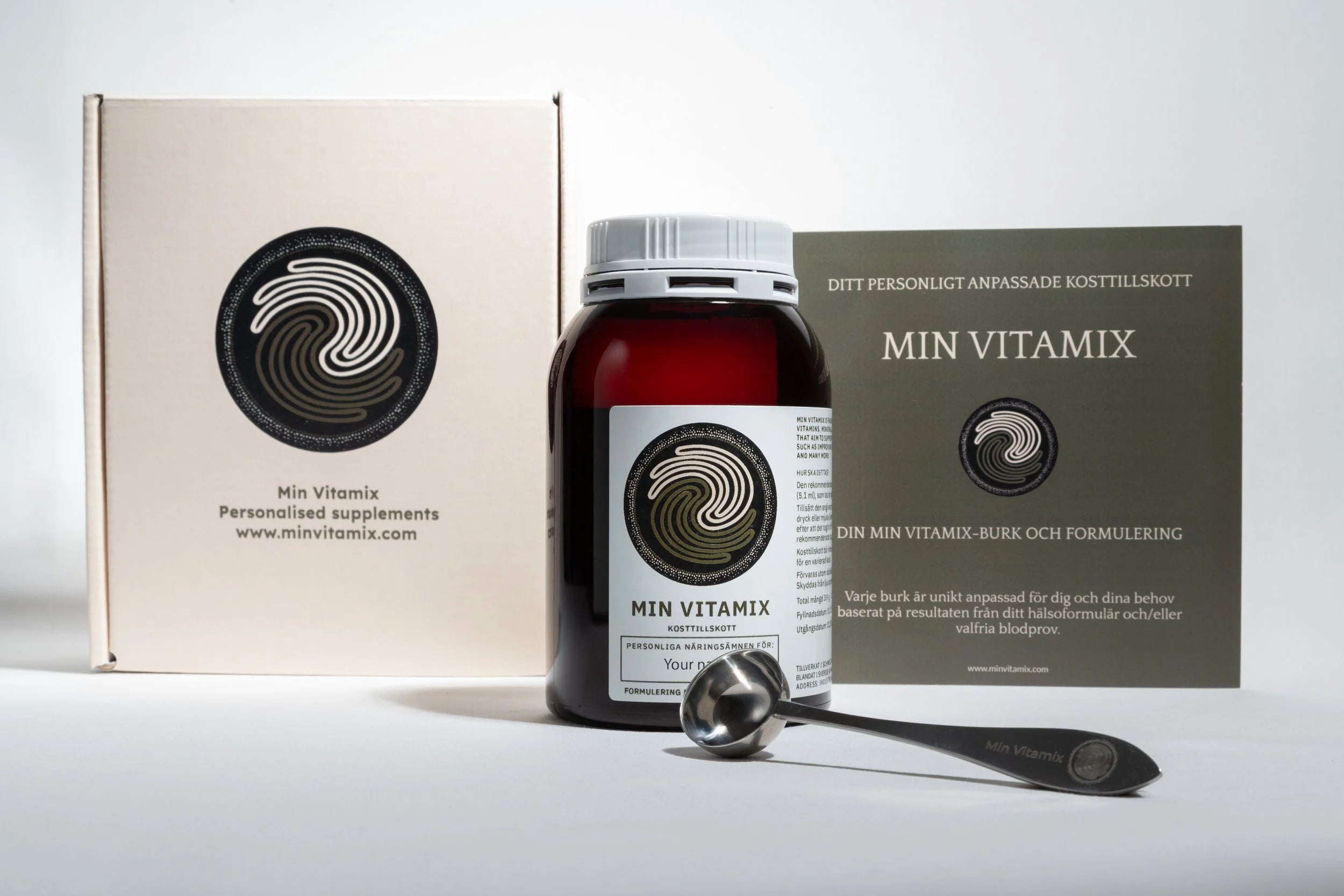 - Min Vitamix dosing spoon - Min Vitamix’s dosing spoon is measured to ensure ease for you taking your supplements to the prescribed ml dose per day.