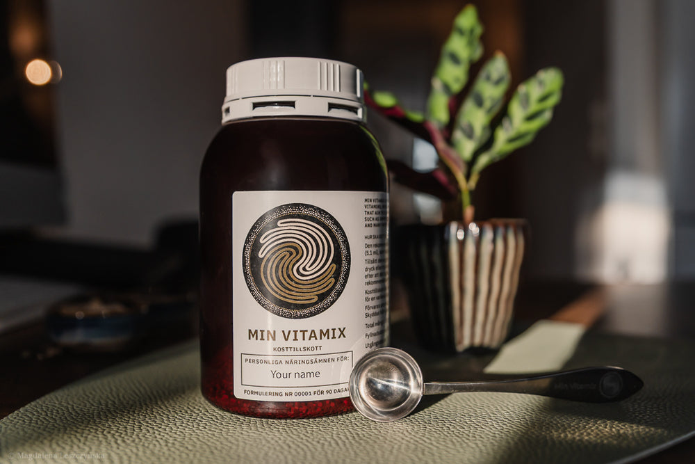 Min Vitamix dosing spoon - Min Vitamix’s dosing spoon is measured to ensure ease for you taking your supplements to the prescribed ml dose per day.