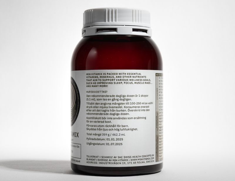 Min Vitamix supports your body’s requirements with a freshly made vitamins and minerals formula for you. With over a million vitamins and mineral combinations, Min Vitamix ensures your personalised vitamin formula is unique to you, contributing to your health, wellness and goals. Explore why Min Vitamix can support your health and wellness.