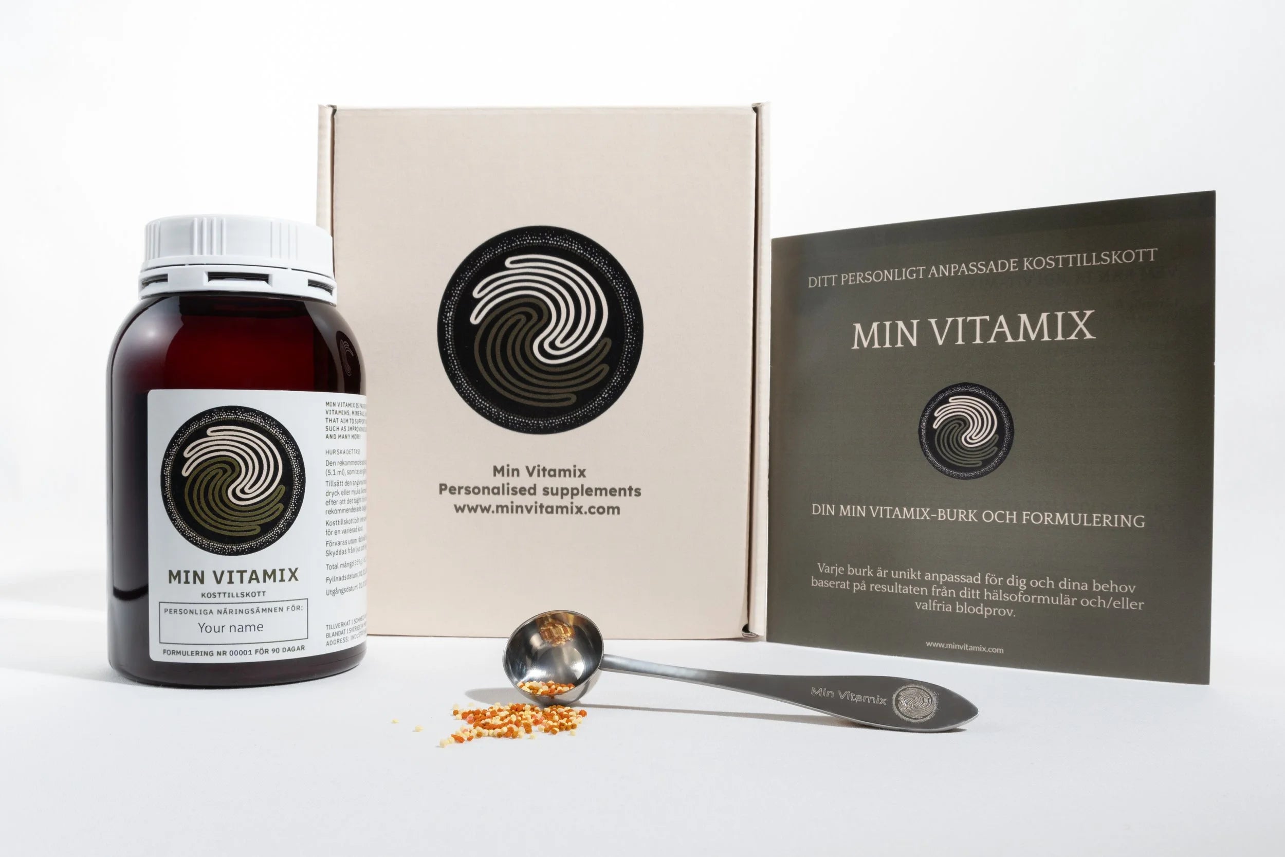 Min Vitamix dosing spoon - Min Vitamix’s dosing spoon is measured to ensure ease for you taking your supplements to the prescribed ml dose per day.